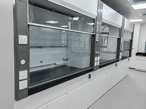 (1)上端柜門:采單層機構,最外層為鋼殼,外膜為實驗室多功能抗的腐蝕堿6mm厚抗倍特板,含有防潮濕、防彎折、抗碰撞等效能;來說還要在大理石臺面去洗條的空氣流通柜,其中襯板考慮抗潮和抗的腐蝕標準.硬殼與內襯間隔層,可包容水、電、有毒氣體線管系統,并可確認柜門密封與防防。